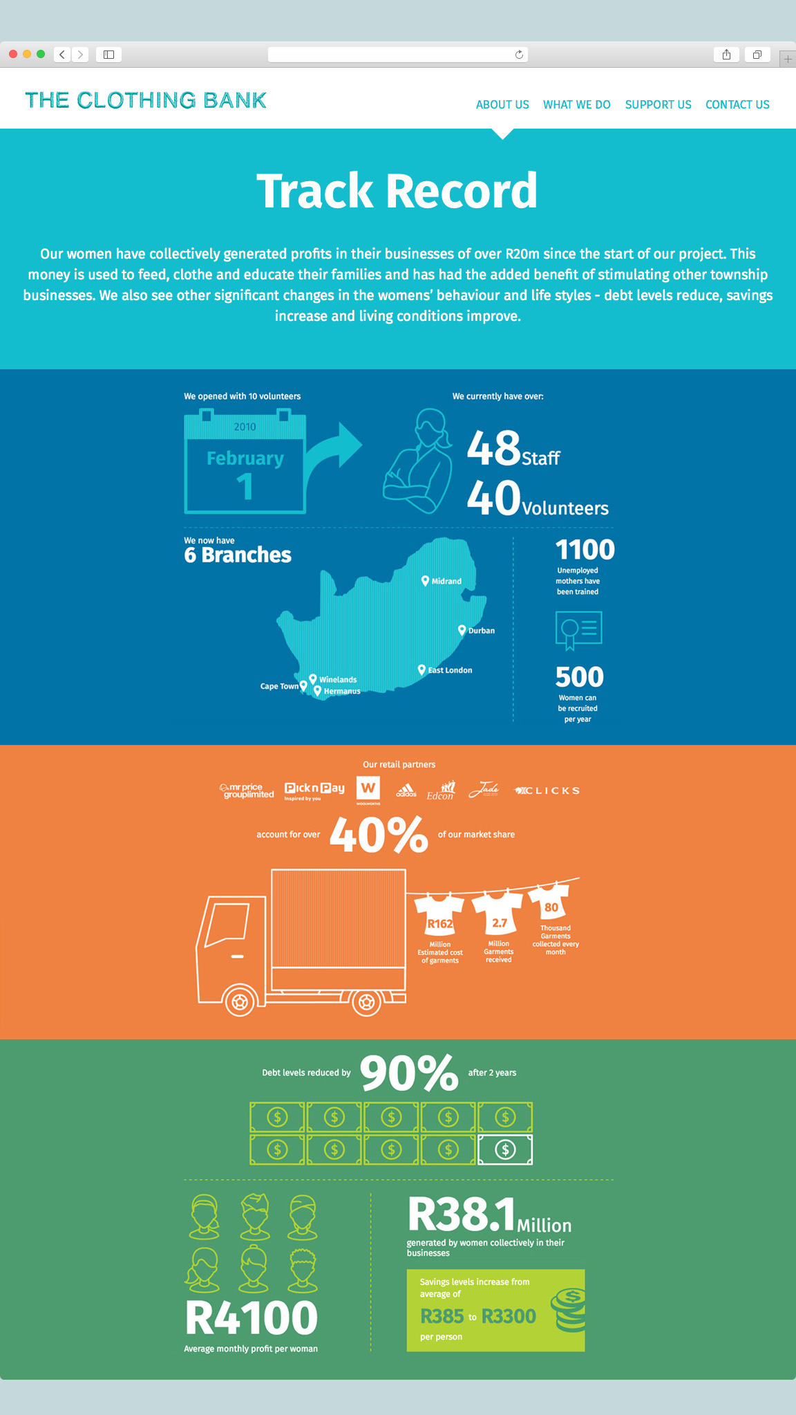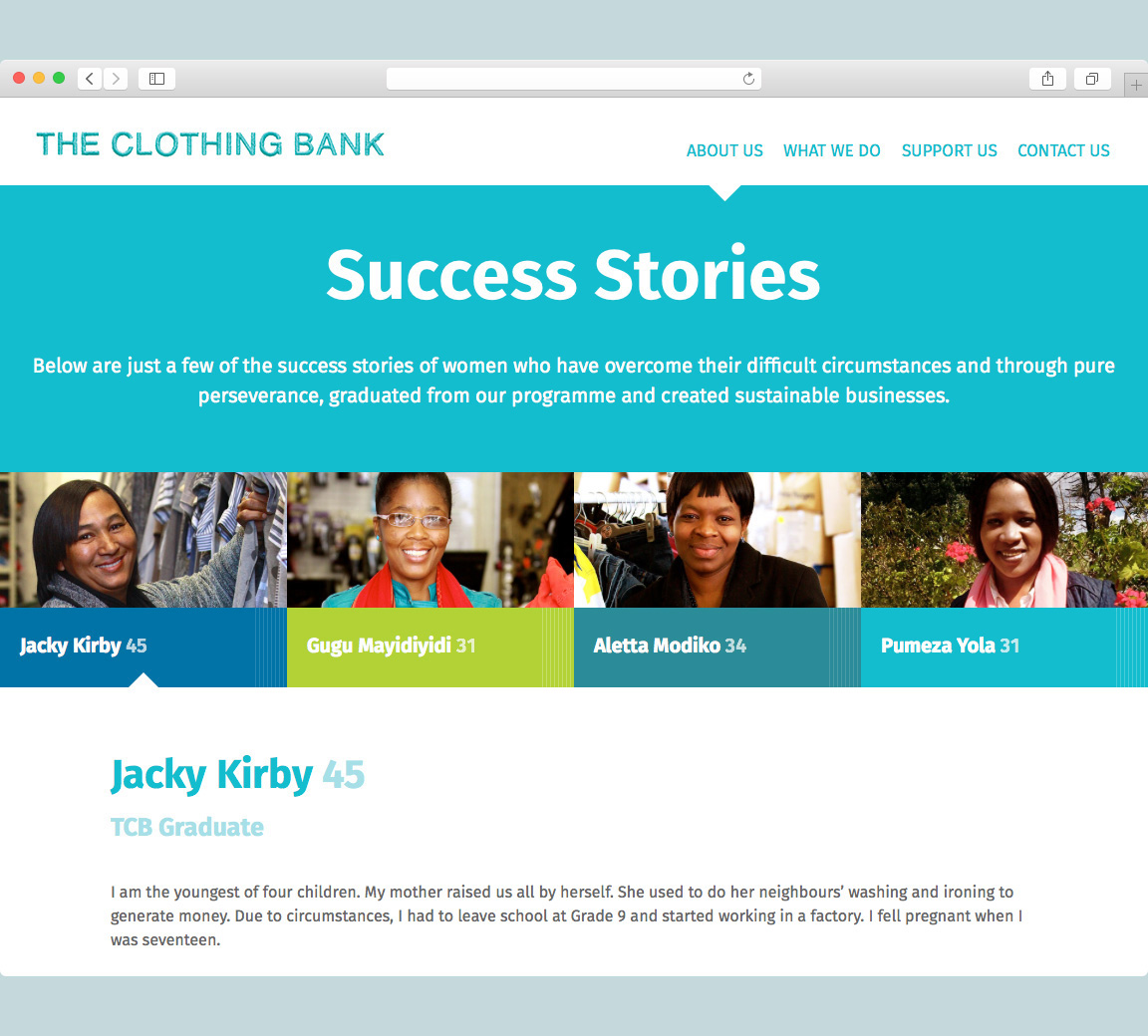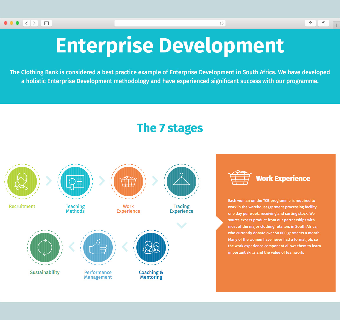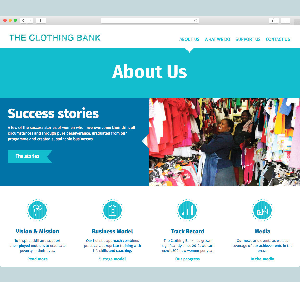 Stitching, pinstripe and tag details are subtly employed on the website for this non-profit that empowers unemployed mothers through enterprise development so that they can become financially and socially independent. The design positions the brand professionally to both interested visitors and corporate sponsors.