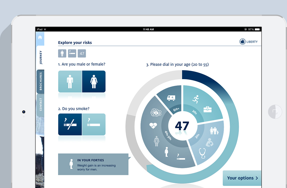 An intuitive tablet app making complex long-term financial goal-planning interactive and easy to understand.