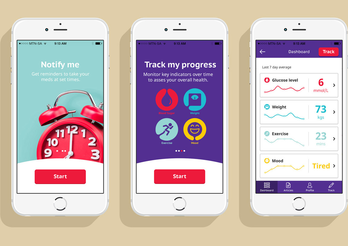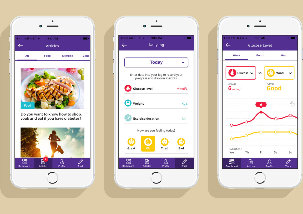 A colourful app to track, monitor and discover more about type 2 diabetes.